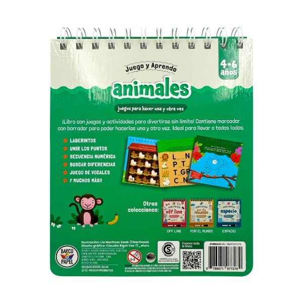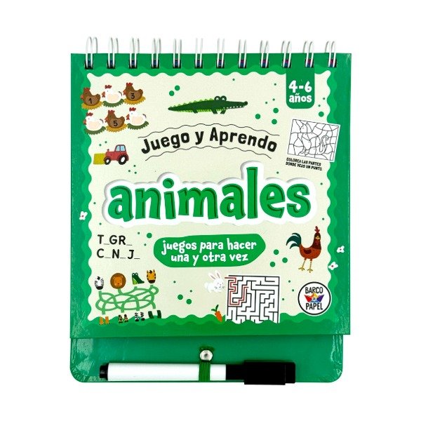 Un libro didáctico ideal para las infancias, pensado para acompañar el desarrollo de habilidades cognitivas de forma lúdica. Contiene 41 actividades ilustradas con temática de animales y está diseñado para que los chicos y chicas puedan escribir, borrar y volver a empezar cuantas veces quieran.