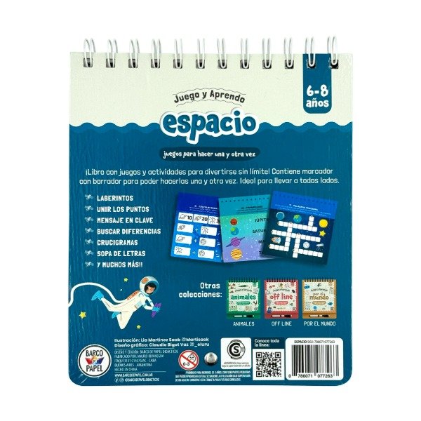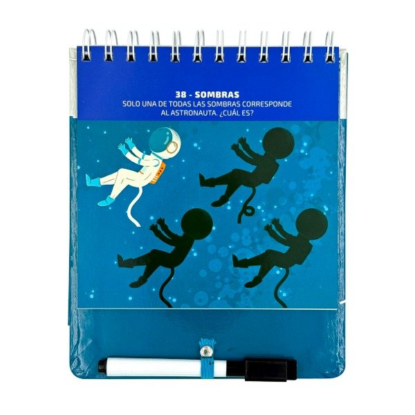 Cada hoja está plastificada y su formato anillado permite usarlo cómodamente en cualquier lugar. Una propuesta divertida para seguir aprendiendo sin pantallas.
