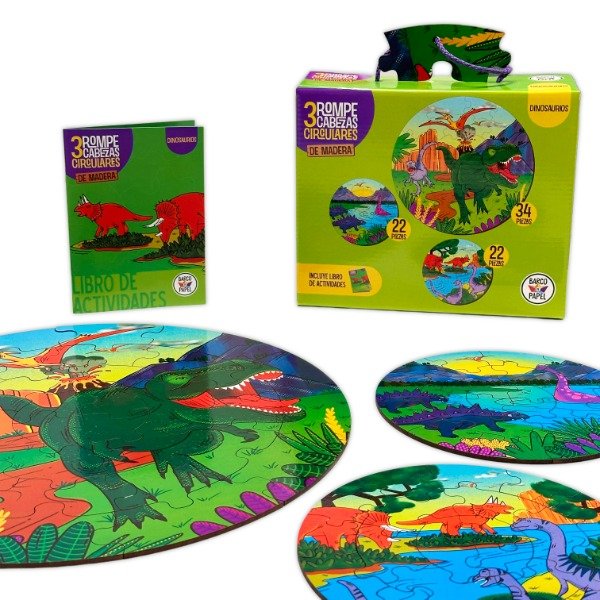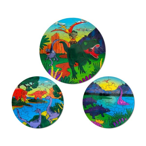 Rompecabezas circular de madera x 3 - Dinosaurios