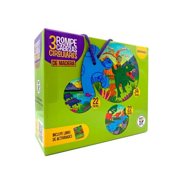En esta caja vas a encontrar 3 rompecabezas circulares hecho en madera, super resistentes: