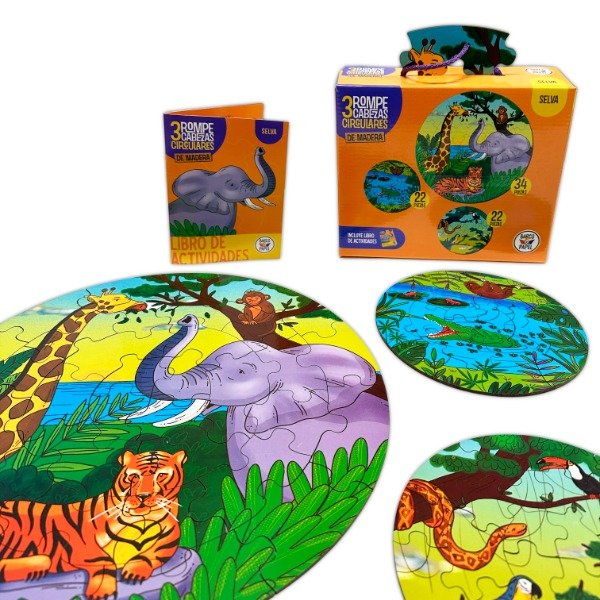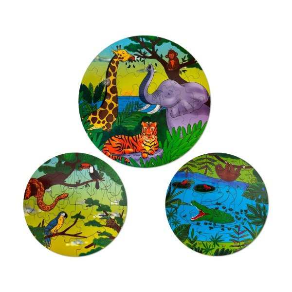 Rompecabezas de madera circular x 3 - Selva