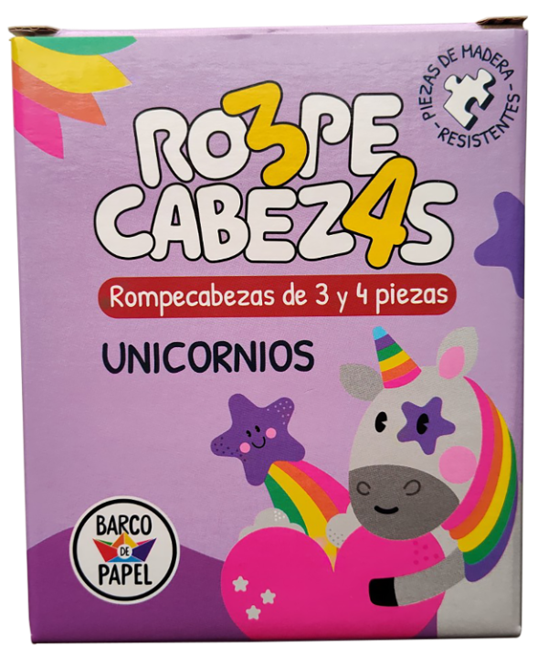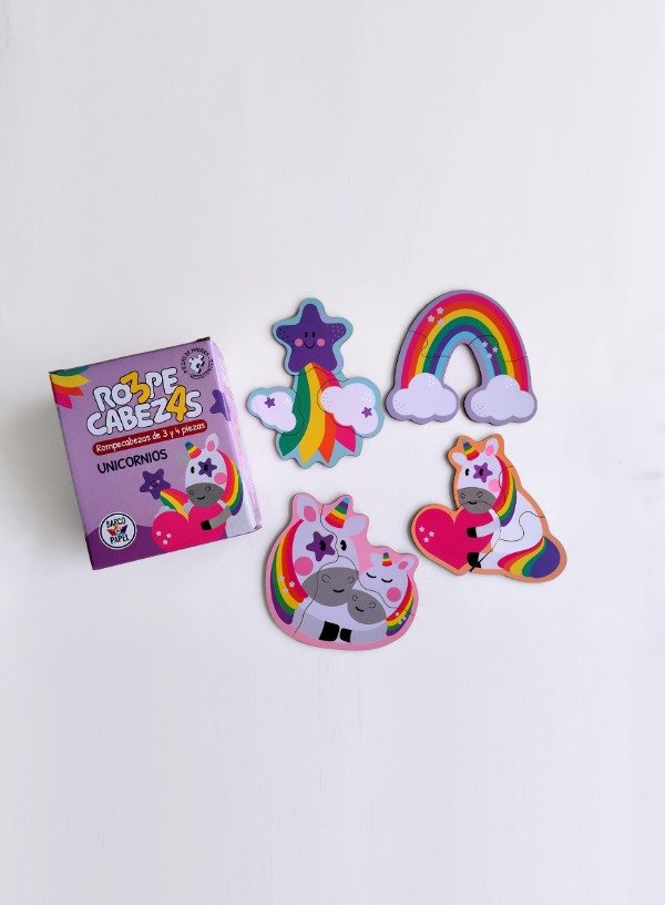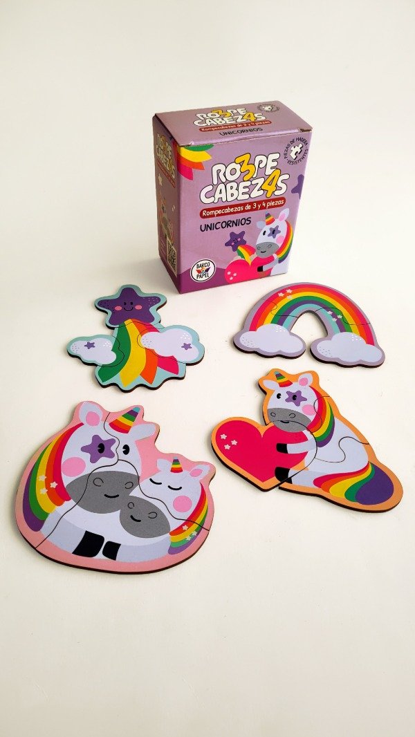 Rompecabezas de madera x 4 - 3 y 4 piezas - Unicornios