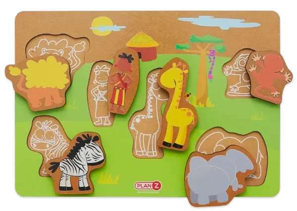 Cuenta con 6 encastre con volumen para facilitar su agarre y manipulación. Confeccionados en madera.