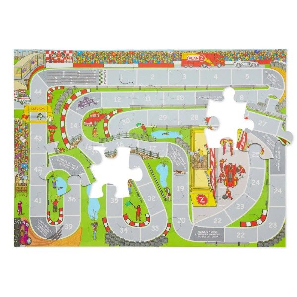 Ademas de ser un rompecabzas de 28 piezas extra gruesas que armado mide 49 x 69 cm.