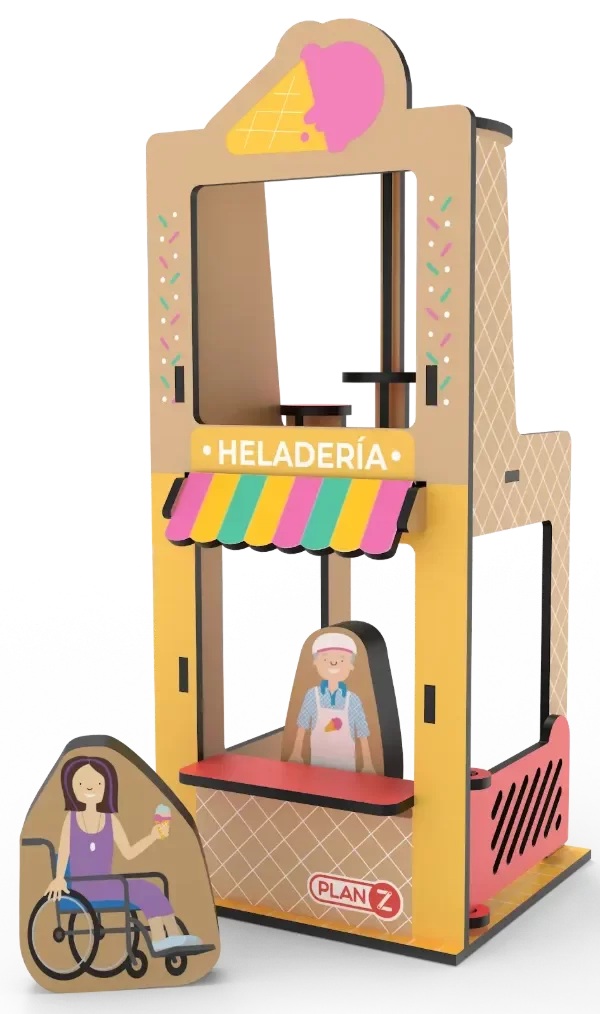 Contiene: 1 heladera, 1 mesa con sobrilla, 2 banquitos, 1 heladero, 1 clienta