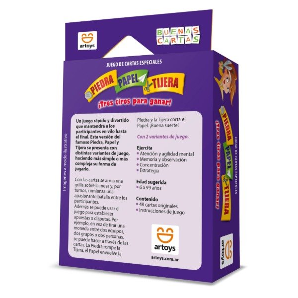 Con las cartas se arma una grilla sobre la mesa y, por turnos, comienza una apasionante batalla entre los participantes. Además se puede usar el juego para establecer apuestas o disputas. Por ejemplo, en vez de tirar una moneda entre dos equipos, dos grupos o dos personas, se puede hacer a través de las cartas. La Piedra rompe la Tijera, el Papel envuelve la Piedra y la Tijera corta el Papel. ¡Buena suerte!