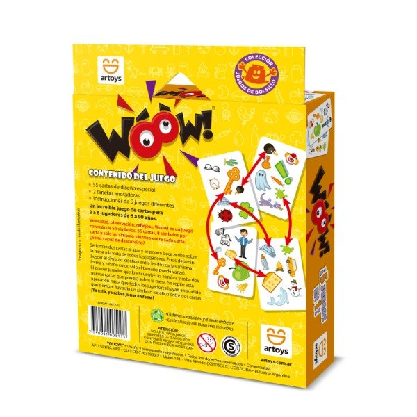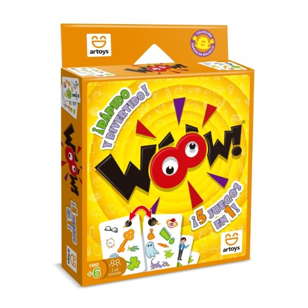 Velocidad, observación, reflejos… Woow! es un juego con más de 50 símbolos, 55 cartas, 8 símbolos por carta y solo un símbolo idéntico entre cada carta. ¿Serás capaz de descubrirlo?