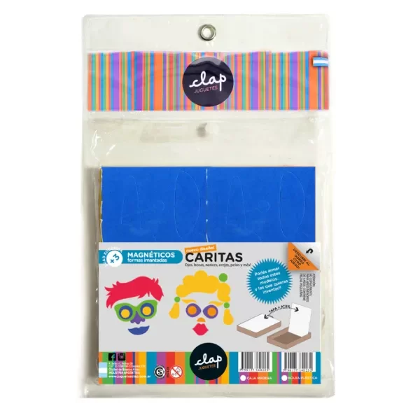 Bolsa con formitas imantadas de colores para armar caritas sobre cualquier superficie metálica.