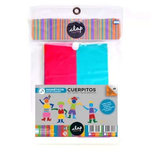 Bolsa con formitas imantadas de colores para armar cuerpitos sobre cualquier superficie metálica.